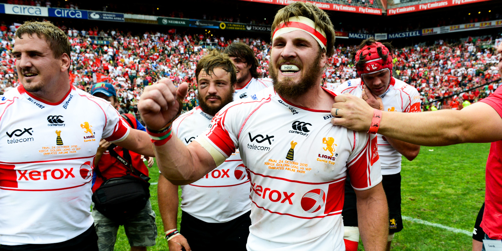 Xerox Lions: 15 EW Viljoen, 14 Stean Pienaar, 13 Wandisile Simelane, 12 Burger Odendaal, 11 Courtnall Skosan, 10 Elton Jantjies (capt), 9 Morné van den Berg, 8 Len Massyn, 7 Vincent Tshituka, 6 Jaco Kriel, 5 Marvin Orie, 4 Willem Alberts, 3 Ruan Dreyer, 2 Jaco Visagie, 1 Sti Sithole. Replacements (from): 16 Jan-Henning Campher, 17 Dylan Smith, 18 Wiehahn Herbst, 19 Reinhard Nothnagel, 20 Roelof Smit, 21 Ross Cronjé, 21 Dan Kriel, 22 Tiaan Swanepoel, 23 Jannie du Plessis, 24 Wilhelm van der Sluys, 25 Manuel Rass.