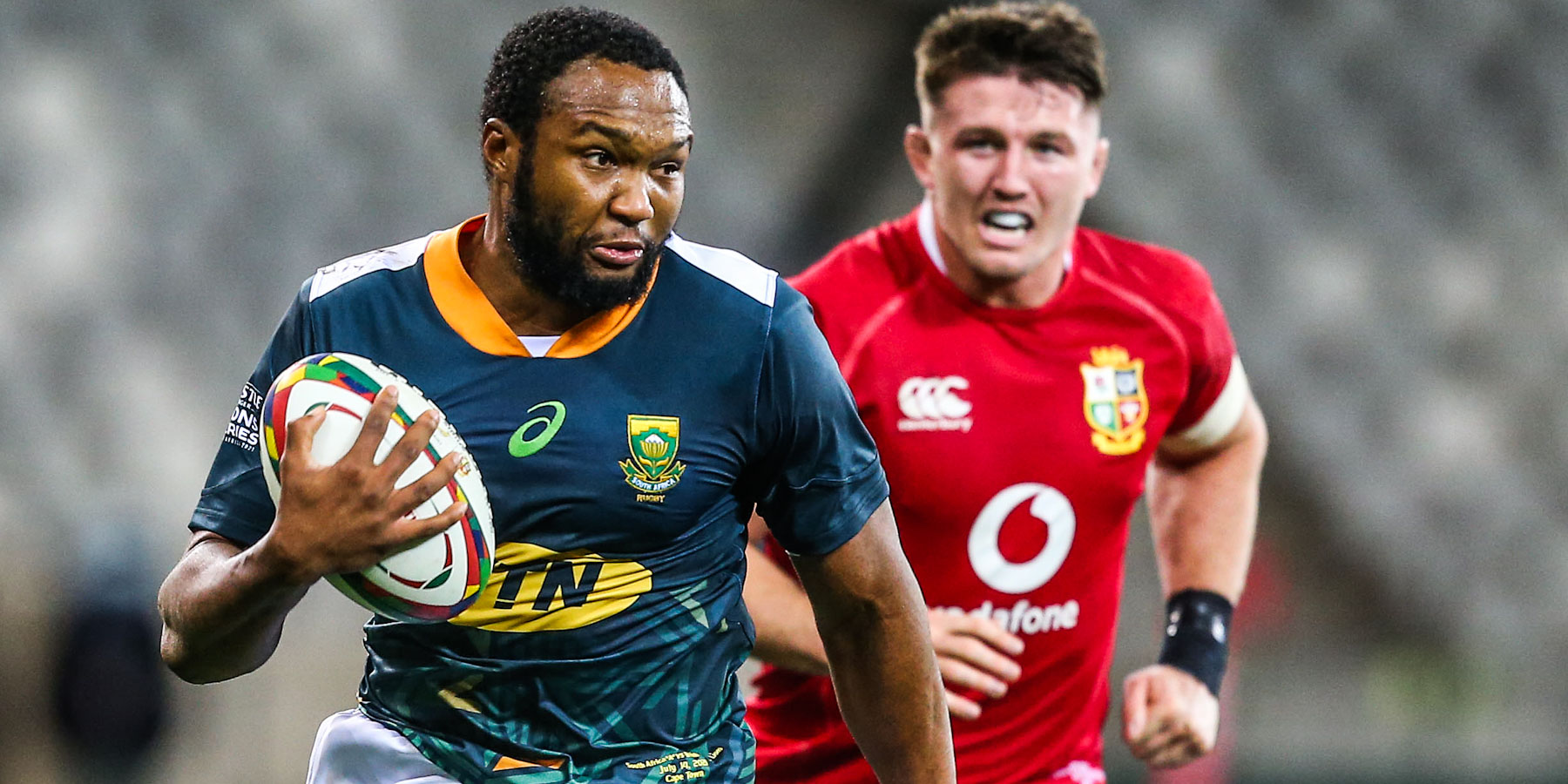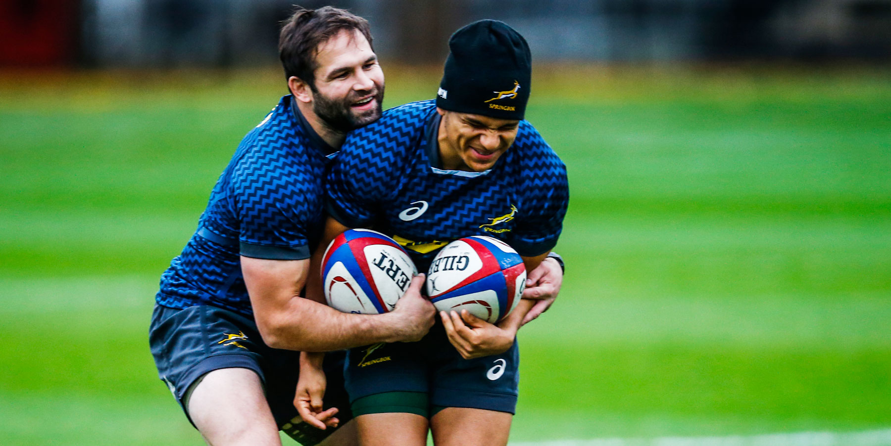 Siya Kolisi and Damian de Allende on defence.
