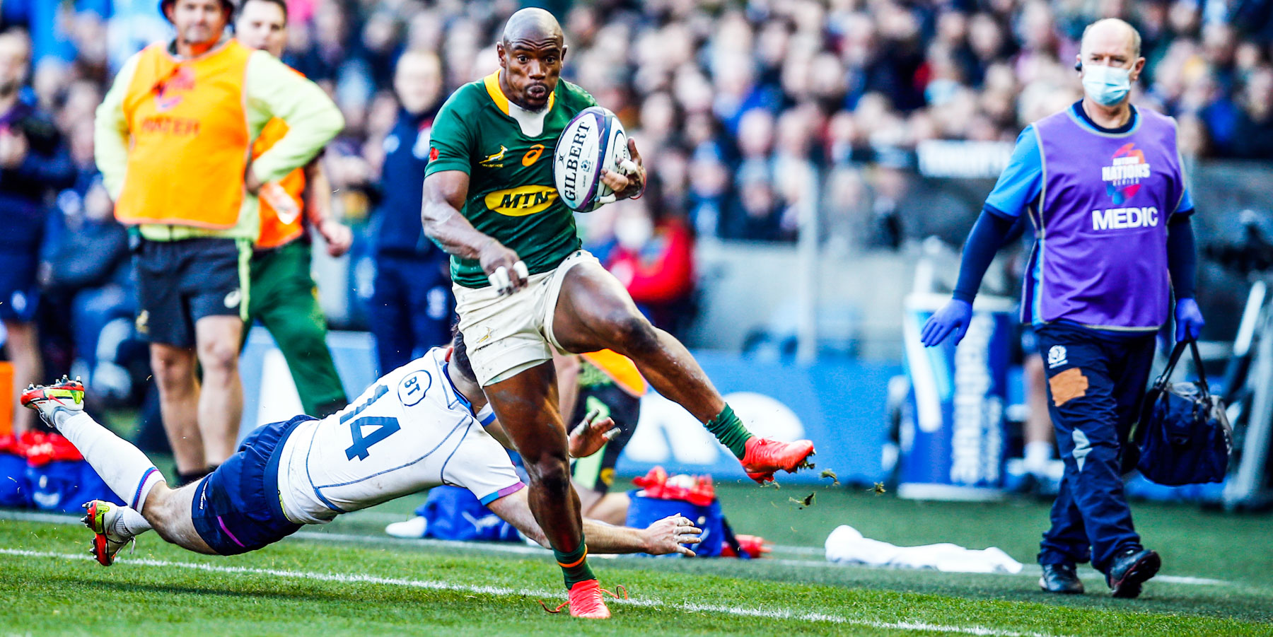 After pivots Finn Russell and Jantjies traded penalty goals, the Springboks showed their potency on attack when skipper Siya Kolisi was on hand in the wider channels to feed Mapimpi who scored the game’s first try just before the half hour mark.