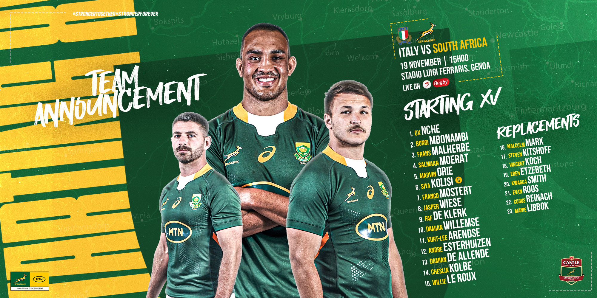 Springbok captain Siya Kolisi and SA Rugby Director of Rugby Rassie Erasmus said physicality and sticking to their structures would be vital when they line up against France in Marseille on Saturday in their second Castle Lager Outgoing Tour Test, while the Boks were forced to make a late change after Jasper Wiese had been withdrawn from the squad.