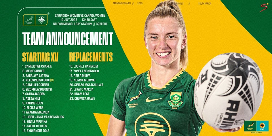 Springbok Women team to face Canada in Gqeberha: